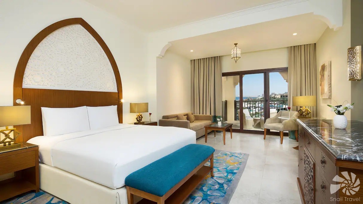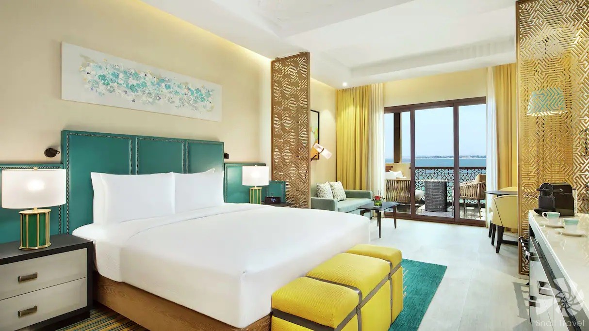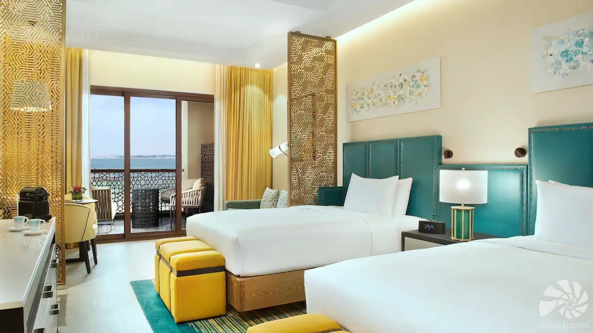 Pokoje a suity jsou navrženy ve svěžím moderním stylu, s použitím jemných barev, dřeva a textilií, které odrážejí přímořskou atmosféru Marjan Island. Většina pokojů nabízí balkony nebo terasy s výhledem do zahrad, na bazény nebo na moře. Pro rodiny resort nabízí speciální rodinné pokoje, propojené jednotky a suity s oddělenými ložnicemi. Interiéry působí pohodlně, elegantně a přirozeně, což vytváří domáckou, ale stále luxusní atmosféru.