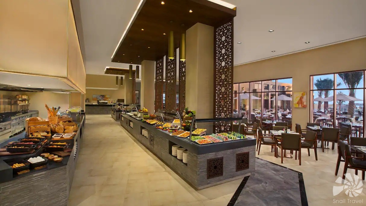 DoubleTree by Hilton Resort & Spa Marjan Island nabízí pestrou paletu restaurací a barů, které uspokojí každý vkus. Hlavní restaurace připravuje bohaté bufety inspirované světovými kuchyněmi, speciality jsou doplněny o tématické večery s živým vařením. À la carte restaurace přinášejí italské, asijské, grilované či středomořské pokrmy. Bary u bazénů a pláží servírují koktejly, lehké snacky a osvěžující nápoje, zatímco elegantní lounge nabízí klidnější prostředí pro večerní posezení.